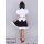 黒のポリエステル生地にて製作いたしました。サイドにあるボタンとコンシールファスナーにて着脱していただきます。ウエストサイドにはゴムが入っているのでサイズの融通がききます。フリルは裏地との一体型で、白のポリエステル生地にて製作いたしました。赤のポリエステル生地で製作したくるみボタンが前面に3つ付いています。