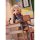 薄紅がかった頬や、キラキラとした印象的で綺麗な瞳はイラストを忠実に再現いたしました。頬杖をついてこちらを見つめる姿や軽やかな毛流れ、トレードマークの白いボンボンも細部にまでこだわり、とびっきりの可愛さに仕上がりました。台座は学校の床のようなタイル地をプリントで表現し、学校机や椅子など学校の放課後のような世界観を大胆に表現しました。差し替えパーツとして目をつむって微笑む表情が付属されます。
