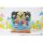 デフォルメされたキャラクター達と背景デザインが可愛らしいミニアクリル置時計です。