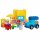 バケーションをテーマに組み立てを楽しみましょう!<アイスクリーム><ジュース><貝殻><音楽プレーヤー>のプリントブロックを使って、お話をはじめましょう!ワゴンや、開閉するドア、パラソル、スーツケース、椅子、お花のブロックが入っています。